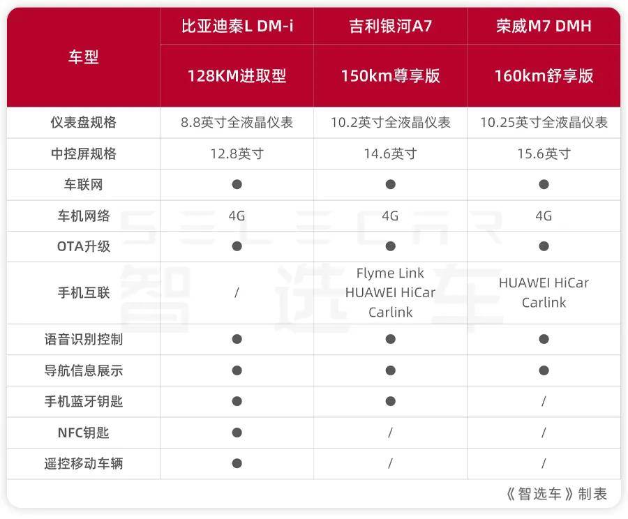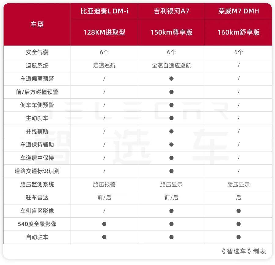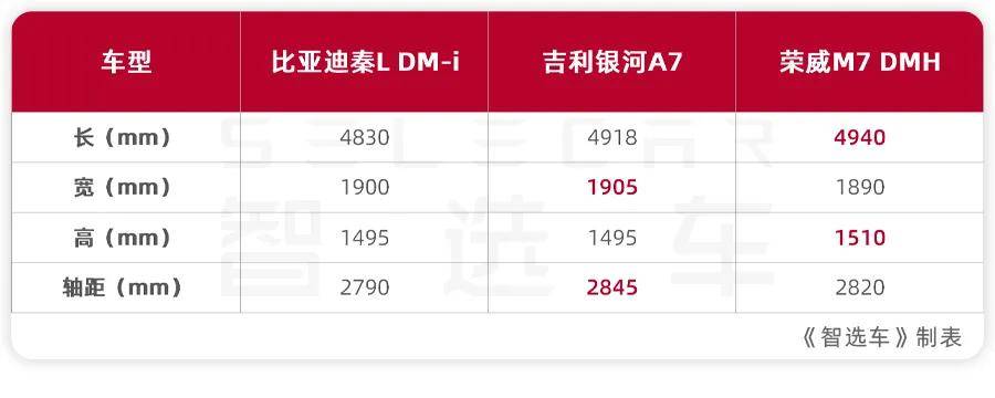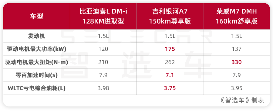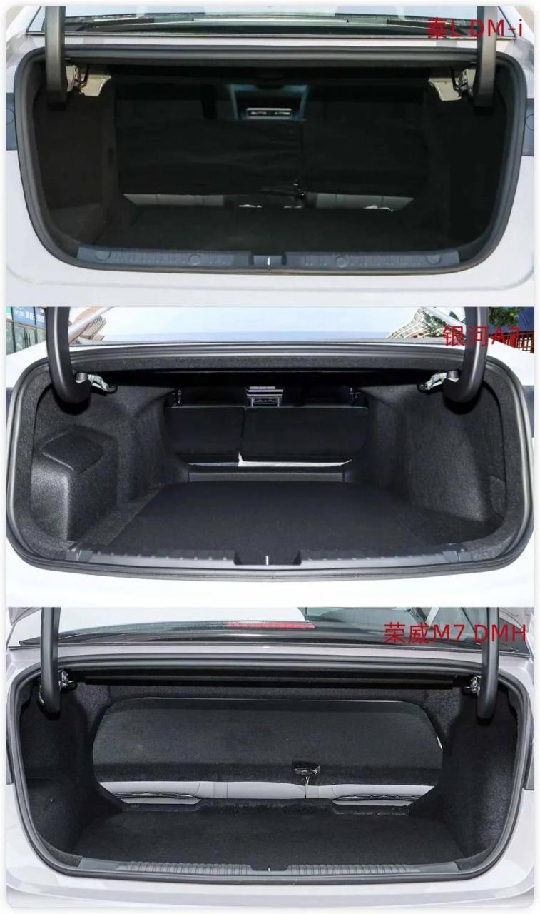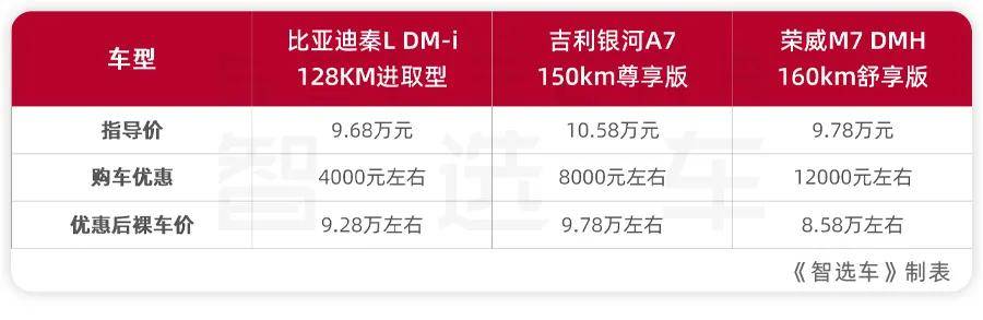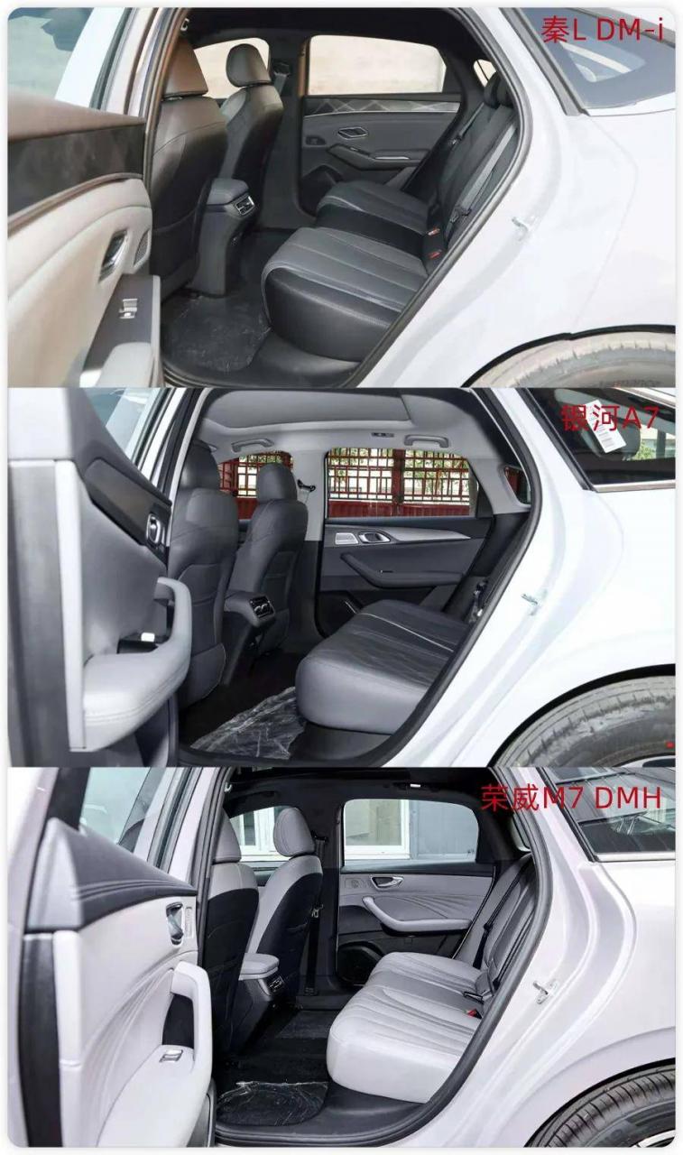 今天我们就拿2026款秦L DM-i 128KM进取型、2025款吉利银河A7 150km尊享版、2025款荣威M7 DMH 160km舒享版,这三款走量的主销版本,从大家关心的价格、空间、动力、配置等方面,聊聊这三款车该怎么选?