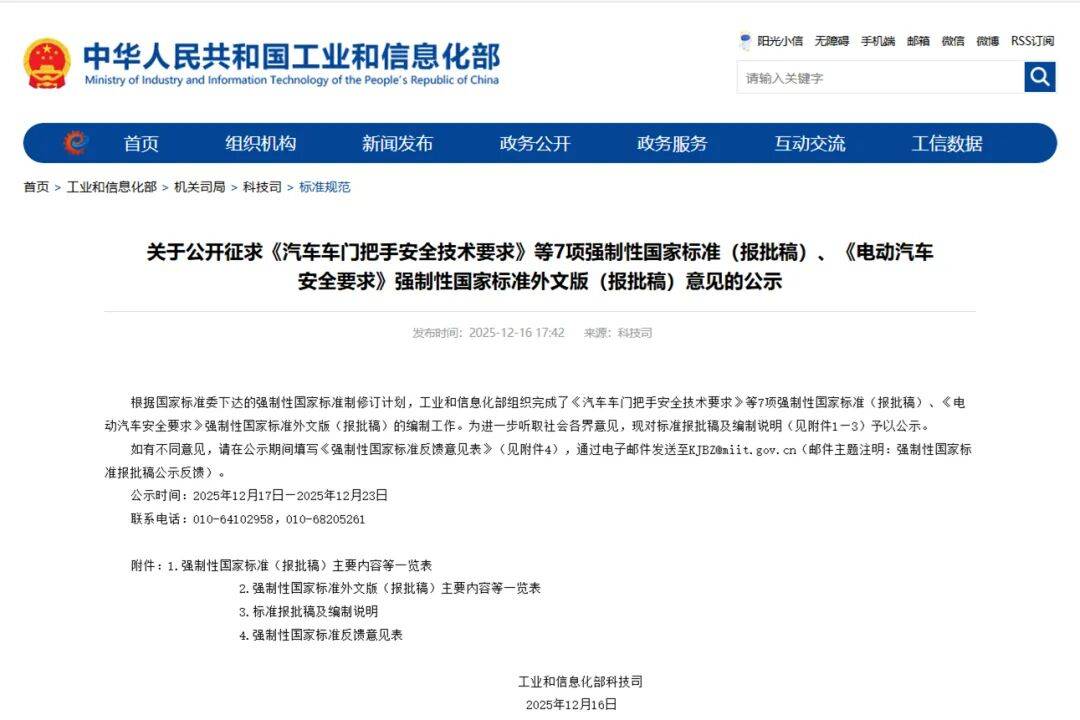 12月中旬,工信部一则《汽车车门把手安全技术要求》的公示,给火了快十年的隐藏式门把手按下了“减速键”。