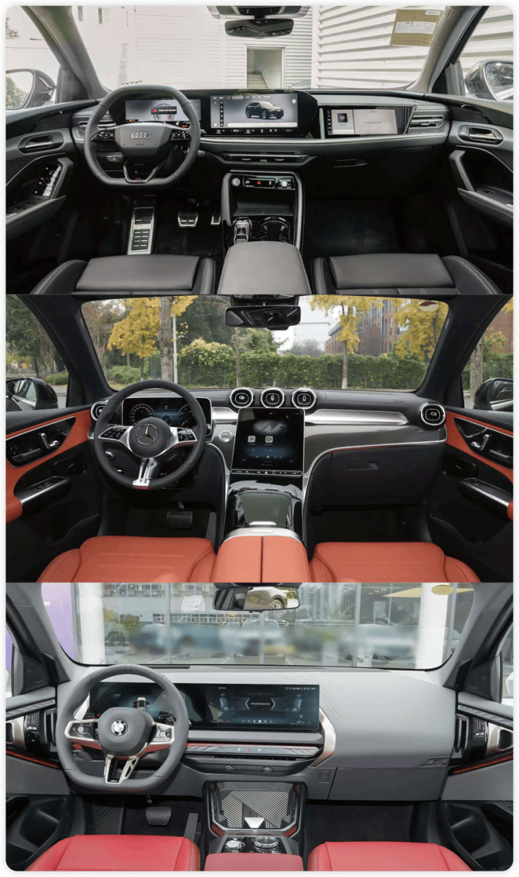 奔驰GLC是12.3英寸全液晶仪表+11.9英寸中控屏,加上奔驰在内饰设计方面的出色功底,因此豪华氛围营造的不错。而宝马X3则是12.3英寸全液晶仪表+14.9英寸中控屏组成的双联屏设计,虽然这种风格大家已经司空见惯,但放在宝马上也不算过时。
