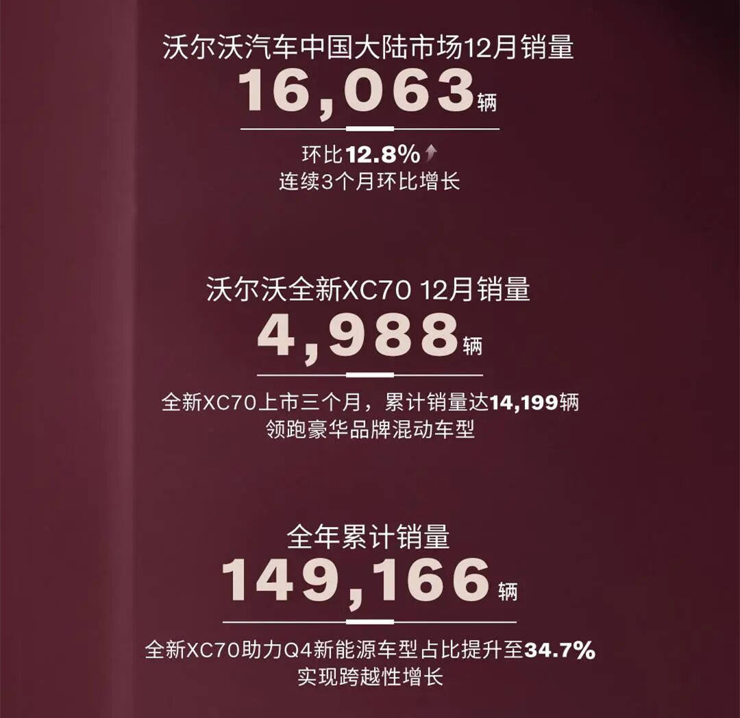 XC70上市三个月累计销量破1.3万辆,12月卖出4988辆;XC60稳坐二线豪华中型SUV头部位置,两者形成混动+燃油的组合,不仅没出现内耗,反而共同撑起了品牌销量。