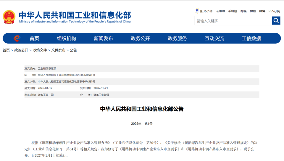 不久前,工信部发布公告,修订并公布新版《道路机动车辆生产企业准入审查要求》和《道路机动车辆产品准入审查要求》,明确自2027年1月1日起,传统燃油车需完成不低于3万公里的可靠性行驶试验,新能源汽车则为1.5万公里。在此之前,这些为推荐性标准,如今正式升级为新车准入的强制性要求。