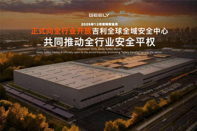 2025年12月,吉利正式向全行业开放全球全域安全中心,里面有“全球最大的汽车安全试验室”、“全球最长的室内汽车碰撞测试跑道”、“全球最大的汽车环境风洞试验室”、“全球最大的任意角度汽车碰撞测试区(0-180°)”和“全球测试功能最多的汽车安全试验室”。
